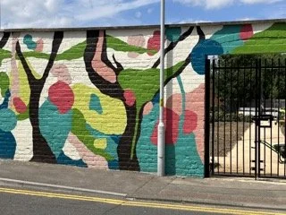 Gloucester Mural Painting 17 Nov Written By Juliet Smith A magical woodland was the theme for this commissioned outdoor mural for an inner city community garden. 2022. Juliet Smith